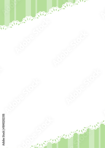 Obraz premium 縦の背景 幅の違うストライプ柄とレース 緑