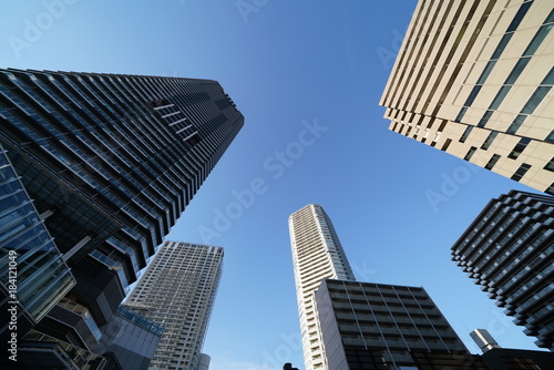 Obraz premium 日本の東京都市景観「高層マンションなどの上空に広がる青空」=東京都中央区勝どき