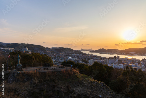 © Yuta1127, Fototapeta premium 日本の都市風景 長崎県長崎市 風頭公園展望台の夕暮れ