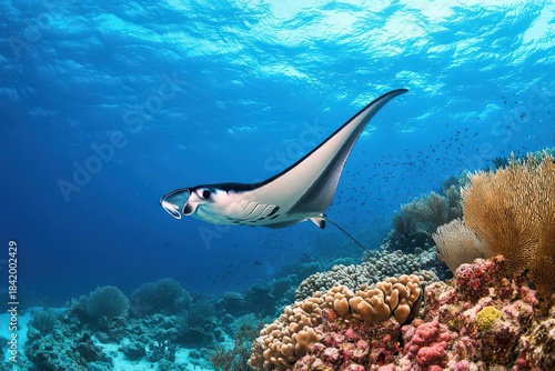 Obraz premium マンタとサンゴ礁