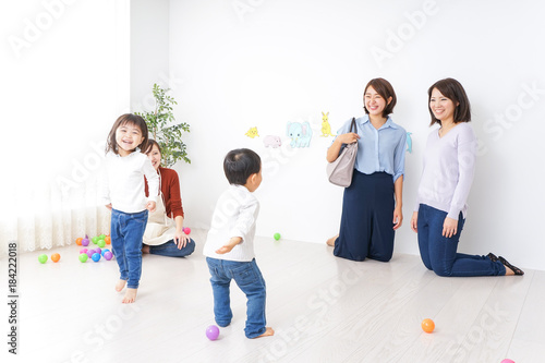 Fototapeta premium 幼稚園の送り迎えをするビジネスウーマン