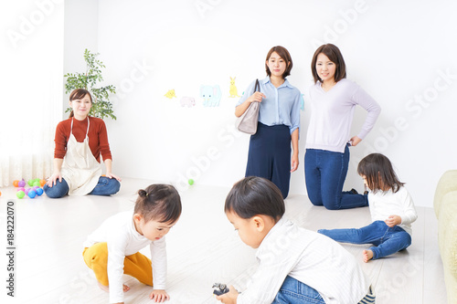 Fototapeta premium 幼稚園の送り迎えをするビジネスウーマン