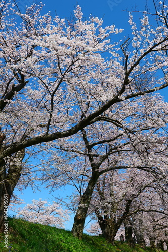 © 義美 前田, Fototapeta premium 春の四重奏で知られる、舟川べり桜並木。朝日、富山、日本。4月上旬。