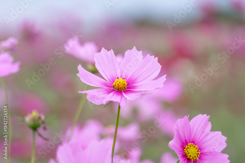 Fototapeta premium 秋のコスモス畑の可憐なピンクのコスモス