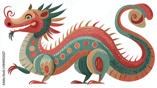 Fototapeta premium 親しみやすい表情で描かれたカラフルな龍のイラスト