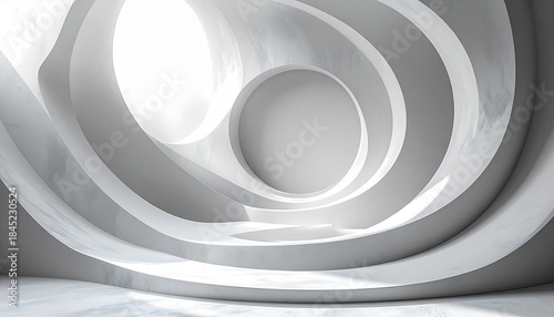 © LuckyStride, Obraz premium 同心円状に広がる白い立体的な抽象彫刻