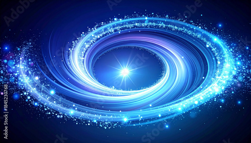 Fototapeta premium 中心から放射する青い光の楕円形リングと星の煌めき