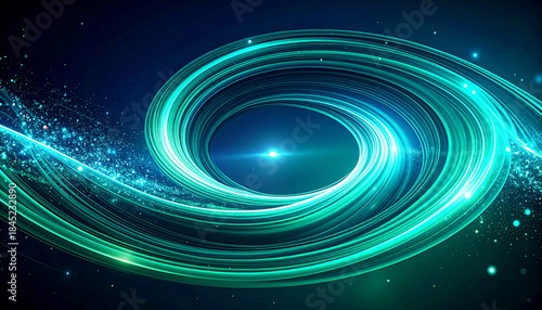 © LuckyStride, Obraz premium 集中する青緑色の光の同心円と星の煌めき