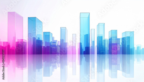 Obraz premium ピンク・青透明ガラス都市スカイライン反射