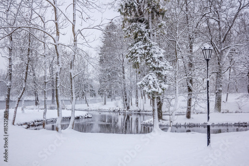 © alenka2194, Fototapeta premium Парк во время снегопада, снежный парк