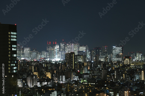 Naklejka premium 日本の東京都市景観・夜景「新宿の超高層ビル群や街並みなどを望む」