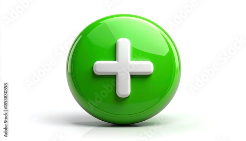 Obraz premium 緑色の丸いプラスボタンが追加や増加を直感的に示すビジュアル