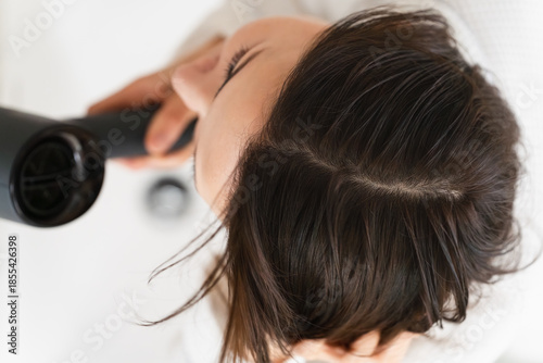© aijiro, Fototapeta premium ドライヤーで髪を乾かしている女性 ビューティイメージ