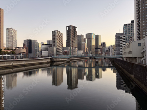 Fototapeta premium 朝の大阪のビルと運河