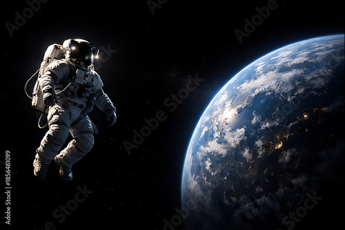 © yh, Fototapeta premium 宇宙空間に漂う宇宙飛行士と青い地球