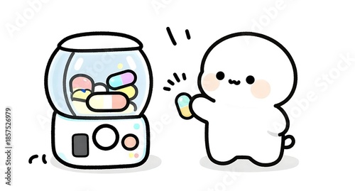 © abstract, Obraz premium 色とりどりのカプセルが入ったガチャガチャを回すキャラクター