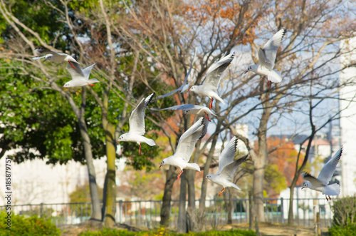 © satoru, Obraz premium 羽ばたくユリカモメの群れ