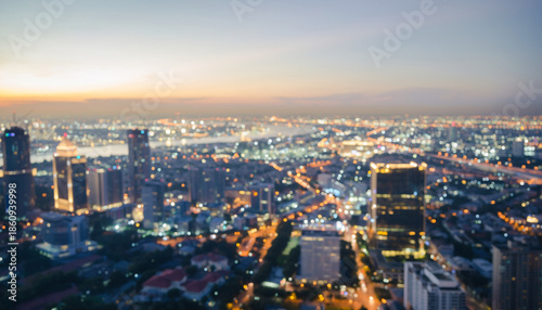 © 健 板澤, Fototapeta premium ビジネスシーン:強いソフトフォーカスのイメージ画像 大都会の高層ビル群のぼやけた写真 広告・ホームページ用背景素材 明るい背景ボケ画像
