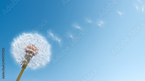 © bephoto, Obraz premium 左下に小さく配置した綿毛と巨大な右余白で企業メッセージ向けの一枚
