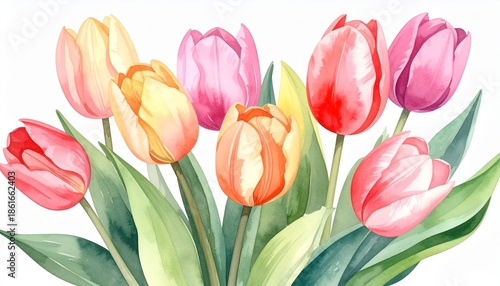 © Bambi and Sunny, Naklejka premium チューリップの花束のイラスト(白背景)