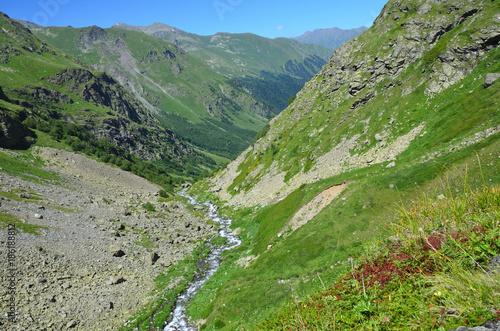 Fototapeta premium Западный Кавказ, горная река Имеретинка. Кавказский биосферный заповедник в солнечный день