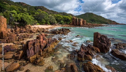 © pham, Fototapeta premium 美しい海岸の岩と波が見える場所
