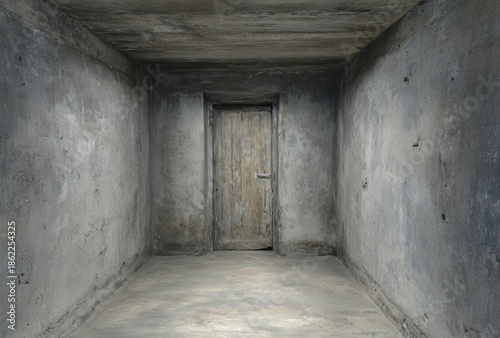 © pham, Obraz premium 無機質な部屋と木の扉のシンプルな背景