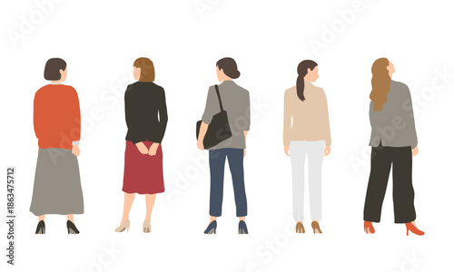 Obraz premium 後ろ姿の女性ワーカーイラストセット 立ち姿