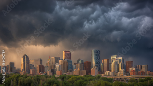 Fototapeta premium 暗雲に包まれそうな都市の迫力、嵐の前の壮大な景色