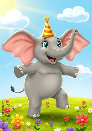 Obraz premium 陽だまりのお祝い:象の笑顔