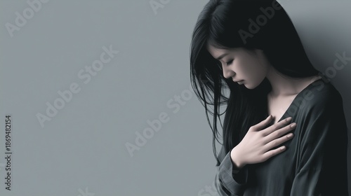 Obraz premium 不安で胸を押さえる日本人女性