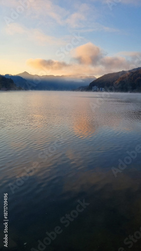 Obraz premium 아름다운 가을 아침 강변 풍경