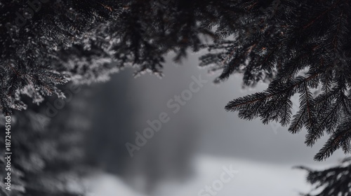 © pham, Fototapeta premium 曇りの日の冬の風景の中の雪の木々