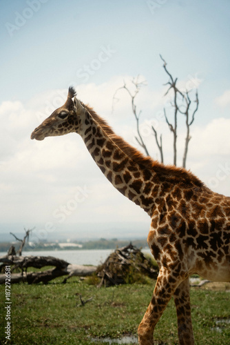 Obraz premium 野生動物が歩くクレセント・アイランド ナイバシャ湖の自然とサファリ風景