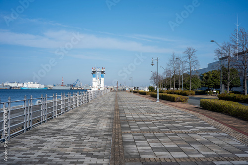 Obraz premium 快晴の横浜港と海上保安庁の巡視船