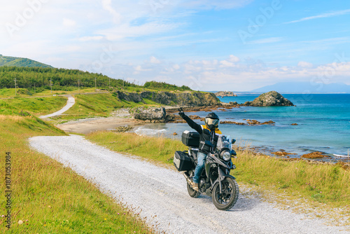 © Junji_Camera, Obraz premium 東北ツーリング 尻屋埼の海とバイク