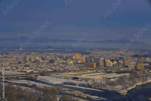 Obraz premium 奥羽山脈と北上市街地