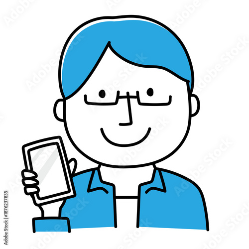 © てがきっず, Obraz premium 携帯電話をみせる眼鏡をかけた男性