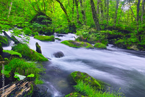 © 7maru, Obraz premium 青森県十和田市、新緑の奥入瀬渓谷の風景
