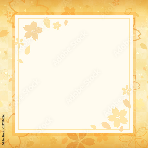 © Peco, Obraz premium 桜の手描き背景と四角和風フレーム_正方形