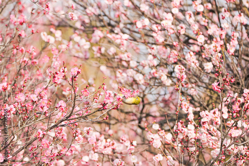 © walkingcow3039, Obraz premium 梅の花の蜜を求めるメジロ