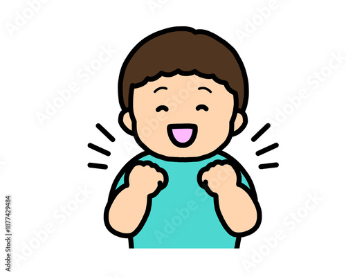 © morimori_, Obraz premium 喜ぶ(ガッツポーズ)アジア人の男の子
