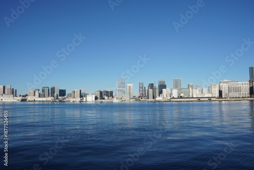 Obraz premium 海越しに見た港区のビル群、中央に東京タワー
