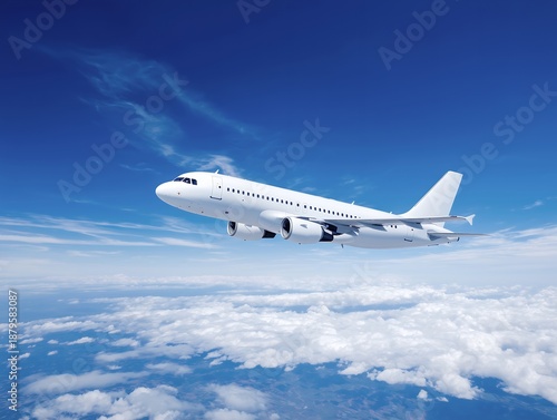 Obraz premium 雲の上を飛行する旅客機が青空を進む空の旅と航空イメージ