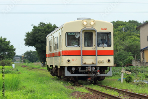 Obraz premium 関東鉄道竜ケ崎線をのんびりと走る元国鉄キハ20系のキハ532号車_2019/7/20撮影