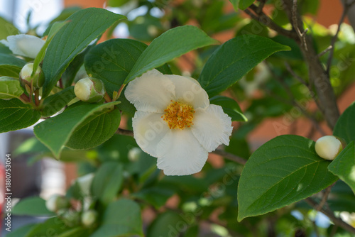 © hiroyoshi, Obraz premium 緑の葉とナツツバキの白い花