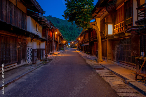 © butterfly0124, Obraz premium 長野県 南木曽町 中山道 妻籠宿の町並み