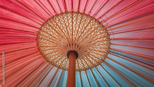 Obraz premium 色のグラデーションで和傘の骨組みを抽象化し現代的な旅のアートに