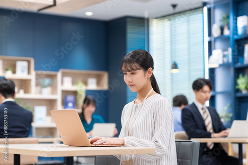 © pain au chocolat, Obraz premium オフィスで働く若いビジネスウーマン