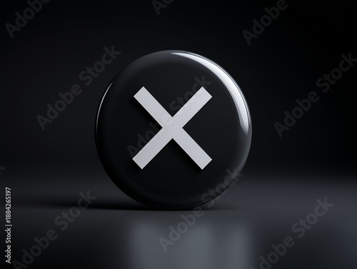 Fototapeta premium 黒背景に浮かぶバツ印の立体アイコンが示す否定やエラーを象徴したシンプルなビジュアル表現